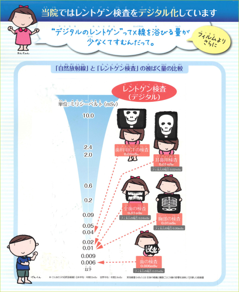 当院で導入しているデジタルレントゲンは超高感度のため、照射時間が短縮され、より低線量でのレントゲン画像取得が可能です。